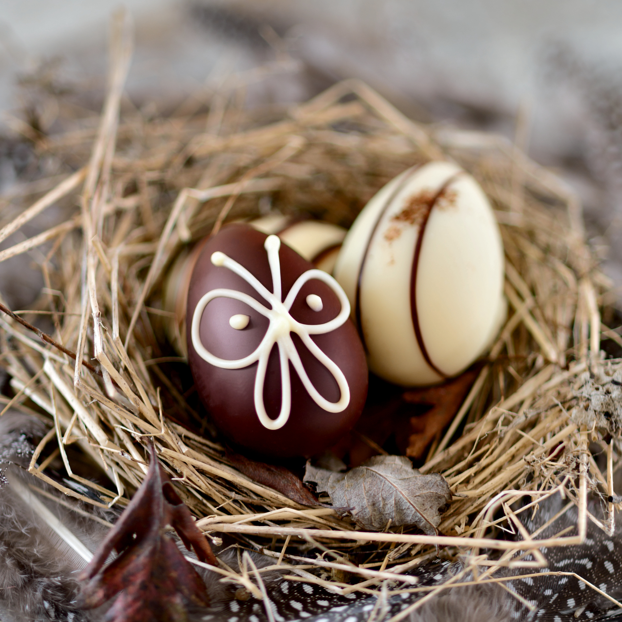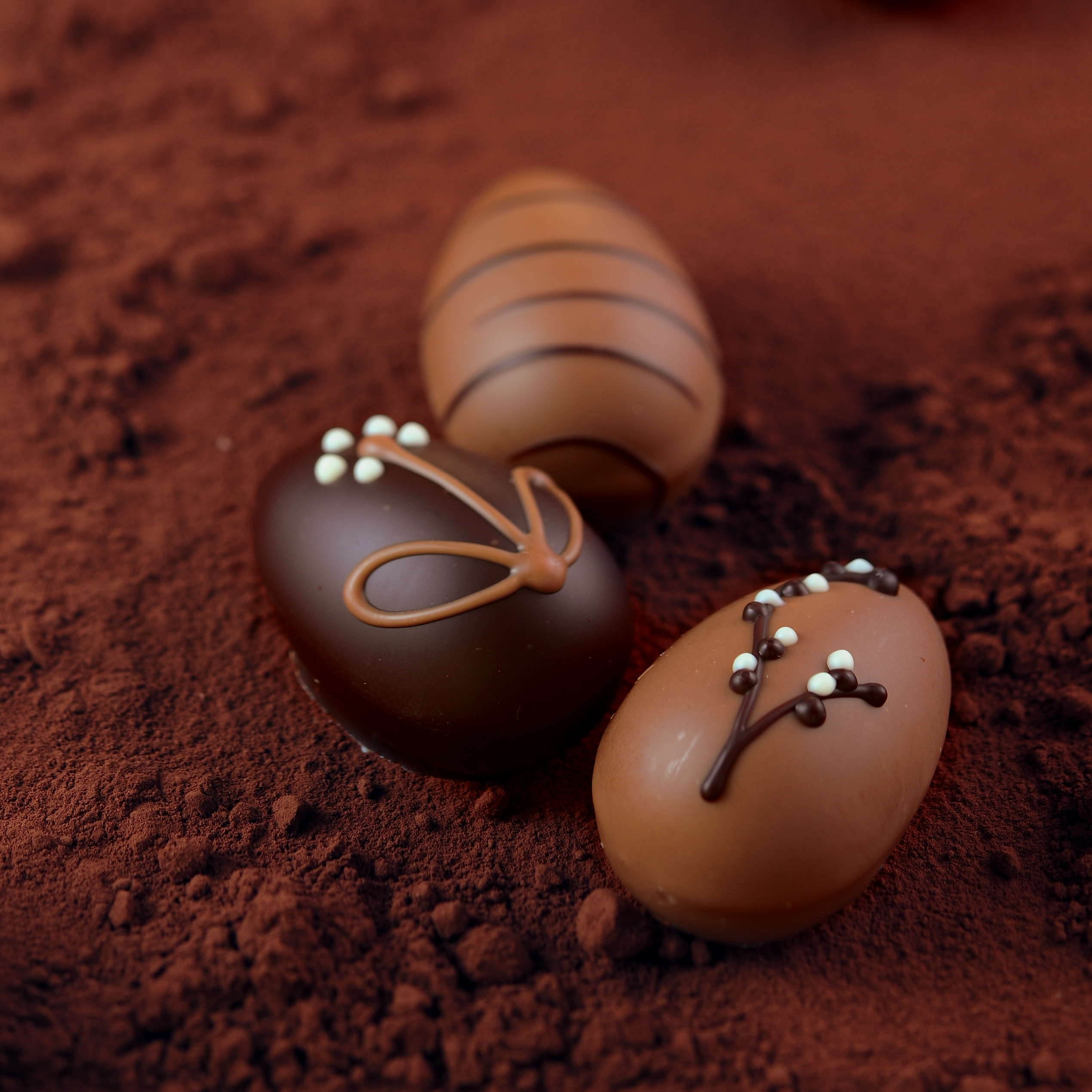 Disse smukke og uimodståelige påskeæg er fyldt med bl.a. nougat, karamel, krokant og champagnetrøffel.