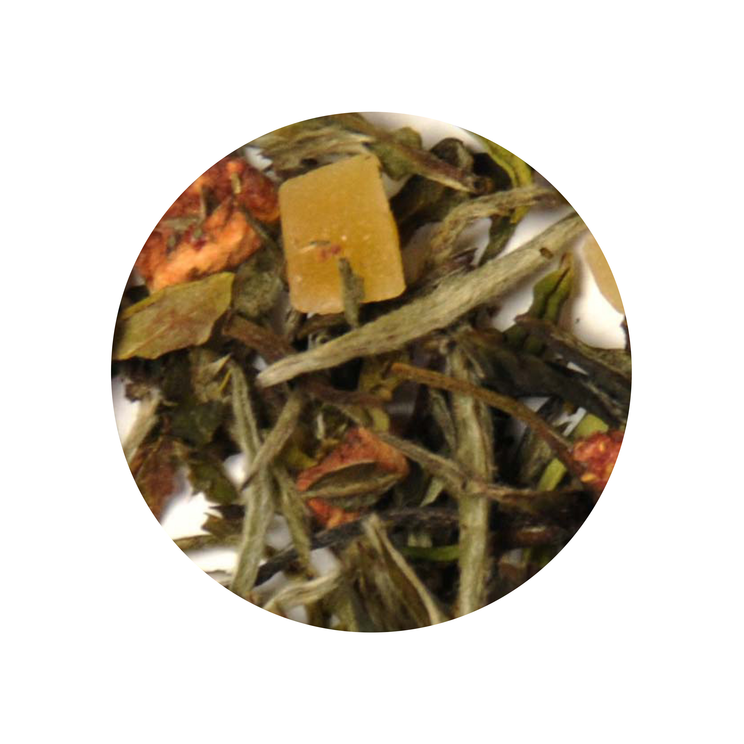 Hvid kinesisk te med eksotiske frugter som mango, jordbær og ananas. Hvis du ikke har mulighed for at slappe af i en hængekøje i troperne og nyde duften af eksotiske frugttræer, vil denne te give dig den samme fortryllende duftoplevelse. Det er ikke helt som at være der selv, men dog et plaster på såret.