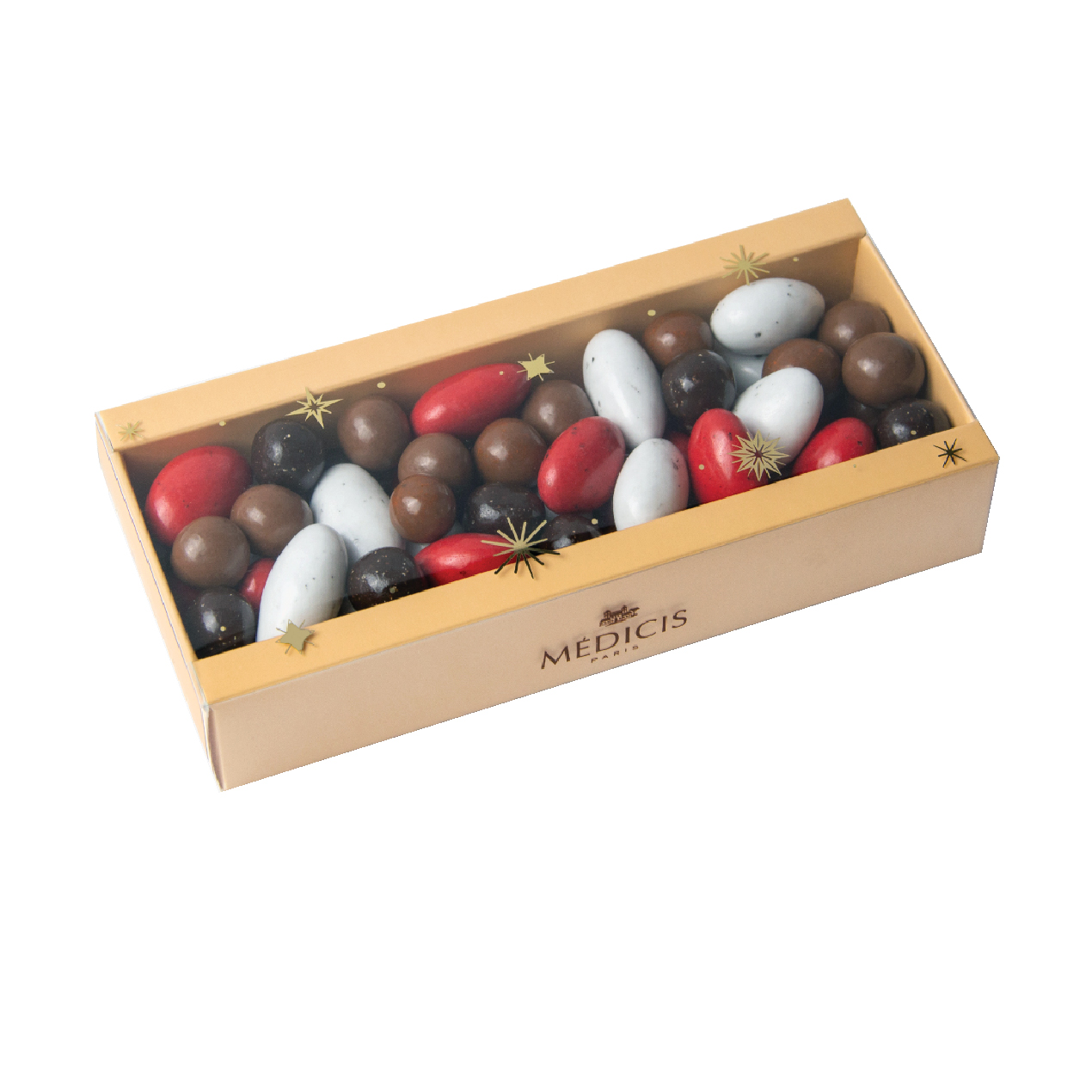 Médicis Juleæske er en smuk samling af klassiske franske julefristelser – et udsøgt udvalg af chokolade, nødder og sprøde teksturer, skabt med husets velkendte håndværk og finesse.