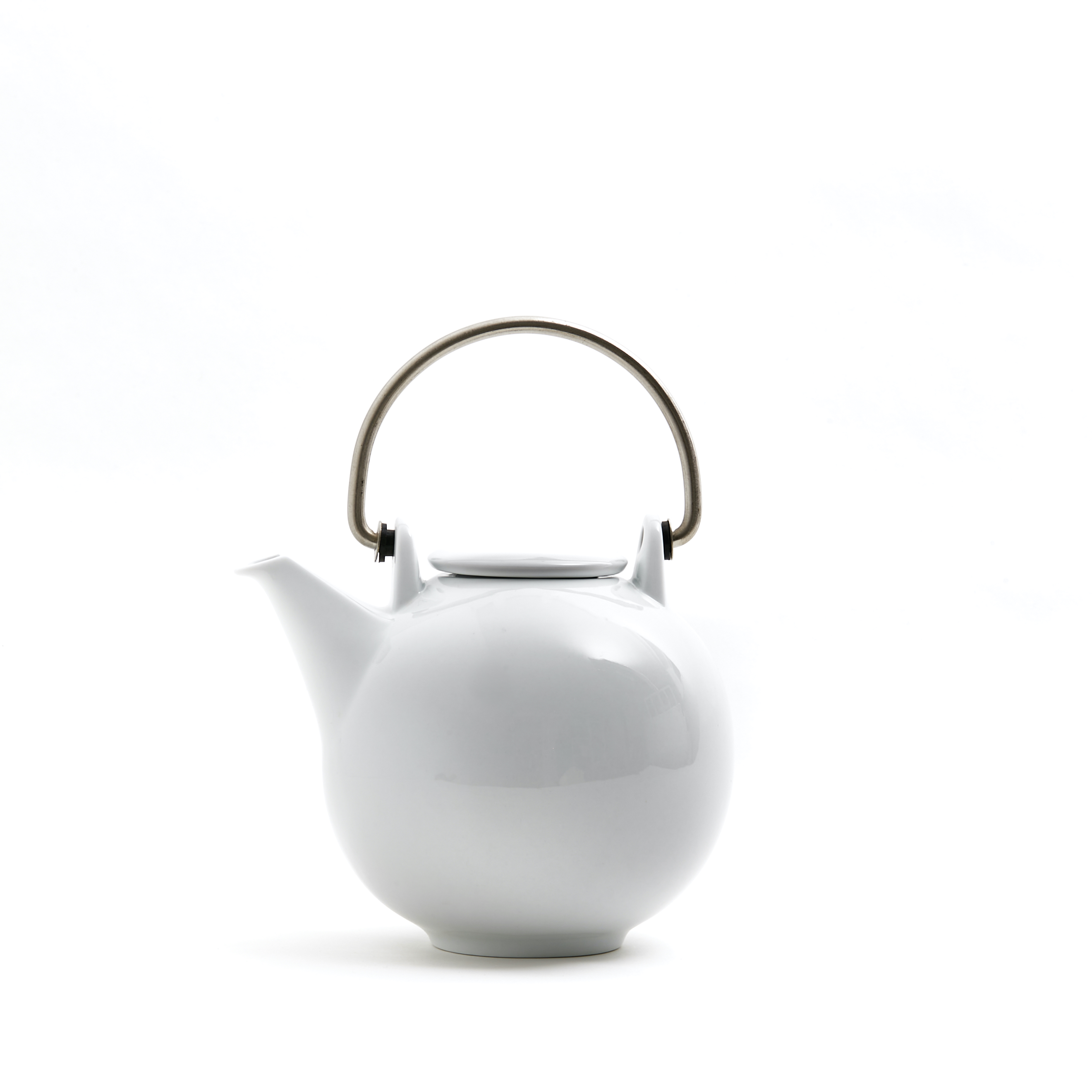 Tekanden er designet af keramikeren Ejnar Poulsen. Tekanden er fremstillet i porcelæn med hank i rustfrit stål. En meget flot og tidløs kombination i et flot design. Vi fører den i blank hvid.