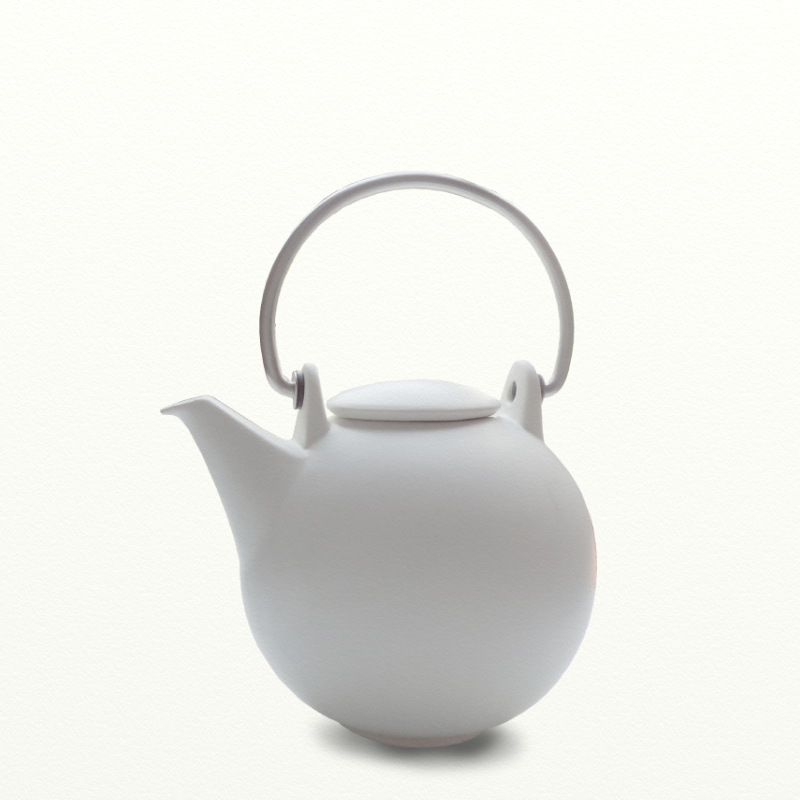 Tekanden er designet af keramikeren Ejnar Poulsen. Tekanden er fremstillet i porcelæn med hank i rustfrit stål. En meget flot og tidløs kombination i et flot design. Vi fører den i blank hvid.