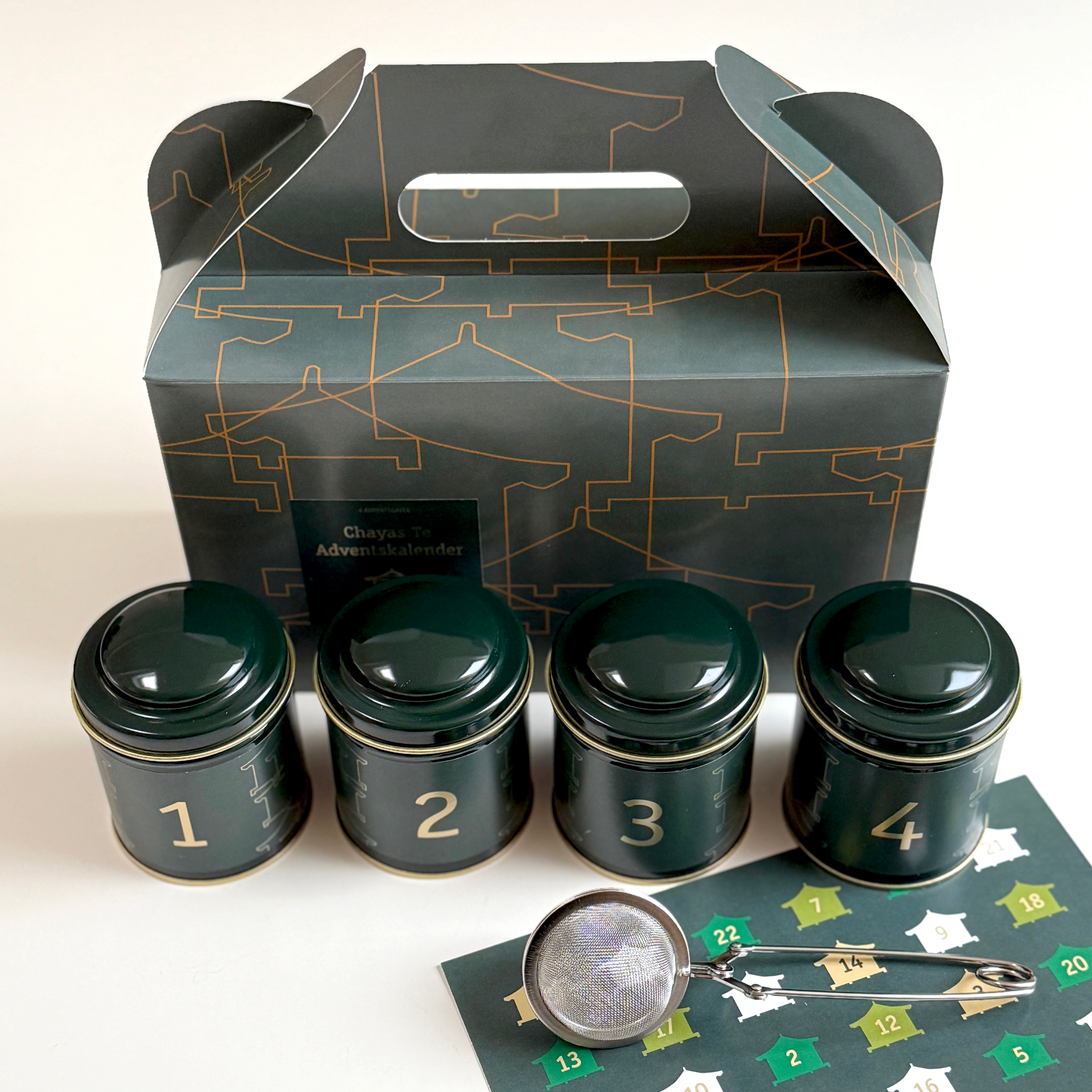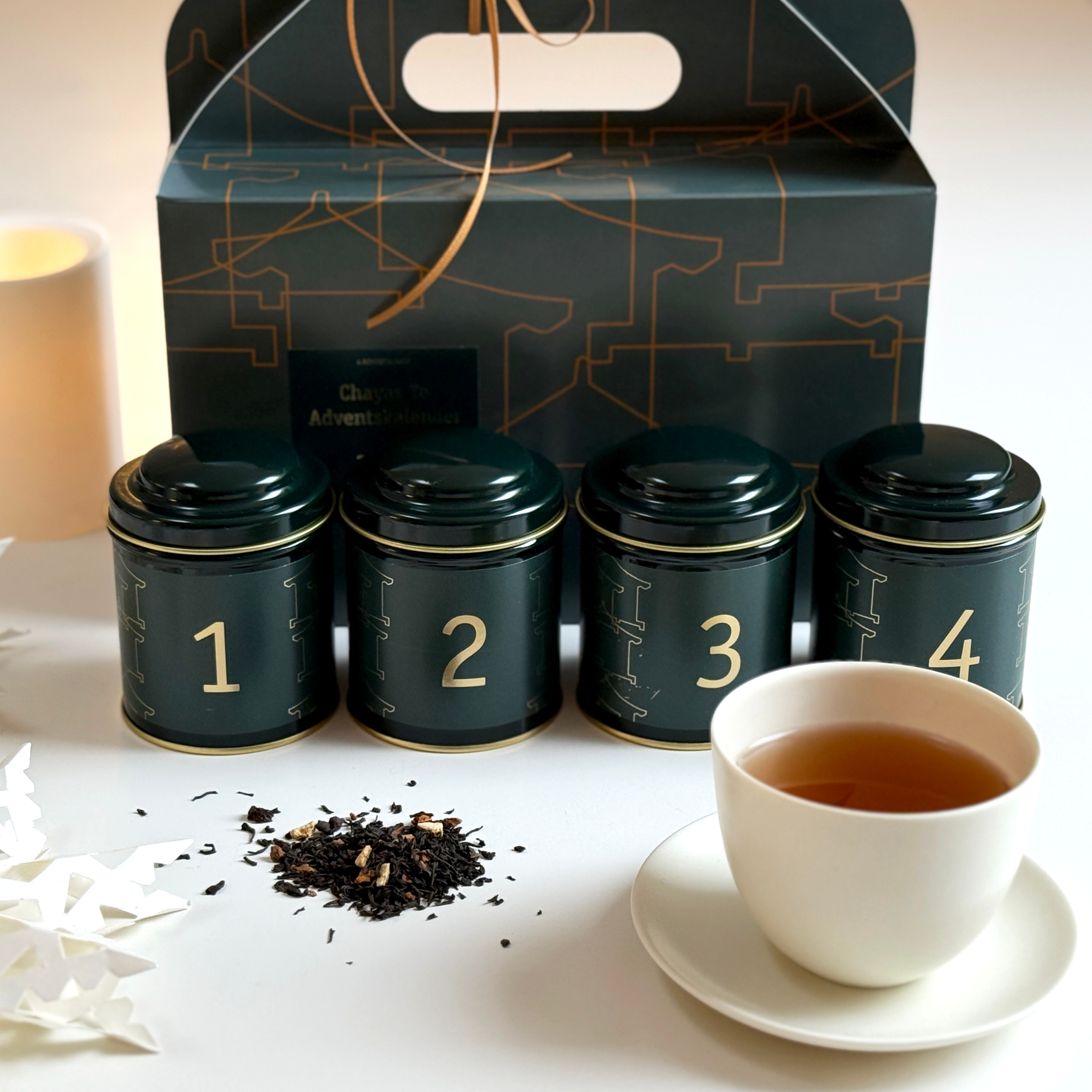 Denne stemningsfulde adventskalender indeholder 4 forskellige krydrede teer, som tilsammen tager modtageren med på en skøn smagsrejse gennem teens varme og duftende univers. Her finder du både sort, grøn og urte-te, nøje udvalgt for at give variation og julestemning i hver kop.